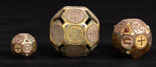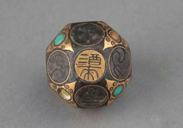 西漢-青銅錯金銀十八面骰三件組 西汉错金银镶嵌铜骰子_百度百科