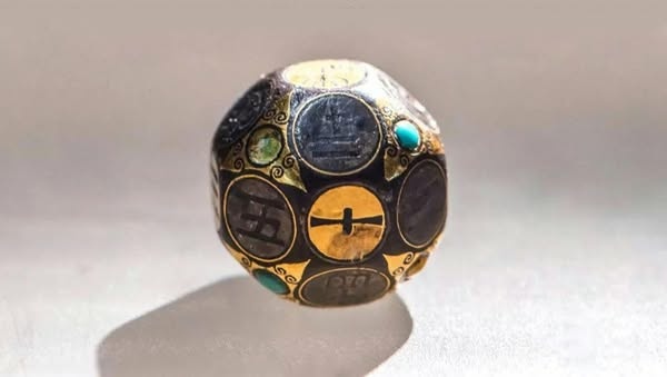 用途: 漢代時,貴族之間流行一種飲酒遊戲,這類精緻的骰子是遊戲中的重要工具。這顆骰子通常有12 或 18 個面,每個面上刻有不同的圖案、數字或文字,用來決定酒令(即輸家要接受的懲罰或指令)。