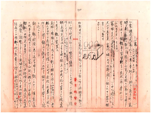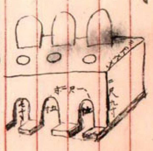 小竈構造較大竈單純,是於地上規劃長方形(長3尺、寬1尺2)的竈礎,兩側對稱設置數個小竈,以土築造竈,鍋甑皆塗設宛然成為一臺型。