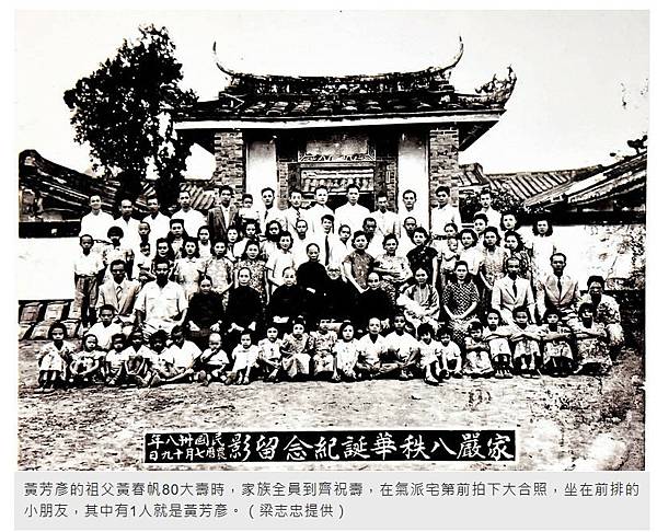最近滯美不歸的黃芳彥醫師,是媒體追尋的主角,草屯鎮老一輩的鎮民則因他而勾起對其祖父黃春帆的記憶。黃春帆晚清同治9年出生,在草屯鎮土城里以樟腦業務致富,富甲一方。