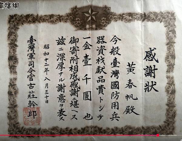 前南投水利會長洪國浩說,黃春帆對地方水利貢獻大,水利會土城工作站的紀念館,收藏不少文物中,也可看出黃春帆重視教育,他為讓土城北勢等里的孩子不用走一小時的路到草屯國小唸書,促成草屯國小土城分校設立,另也為守護地方治安,促成設土城派出所,兩處成立時他都盛裝親臨參加。