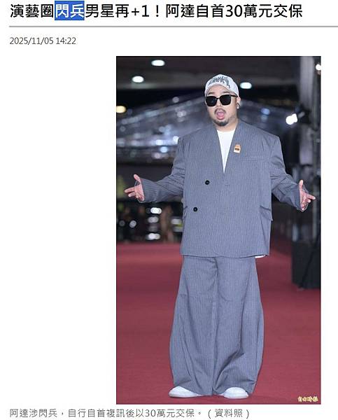 演藝圈閃兵男星再+1!阿達自首30萬元交保 - 自由娛樂 https://bit.ly/4nAevIN