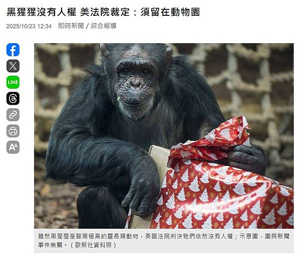 "黑猩猩沒有人權 美法院裁定:須留在動物園 " https://news.ltn.com.tw/news/novelty/breakingnews/5221116