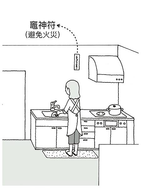 安放在廚房中較高的位置竈神又稱為荒神、三寶(方)荒神、釜神。主要祭祀在以爐竈為中心,經常需要用火的地方。竈神是袪除火厄,防止火災的神明。