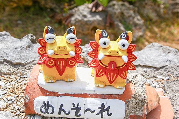 有些風獅爺還寫著「笑って!幸せ来るよ(笑吧!幸福就會來喔!」的迷人字樣,很適合當作伴手禮的選擇。小編之前也在國際通上買了一個超可愛的迷你尺寸風獅爺當作紀念品。