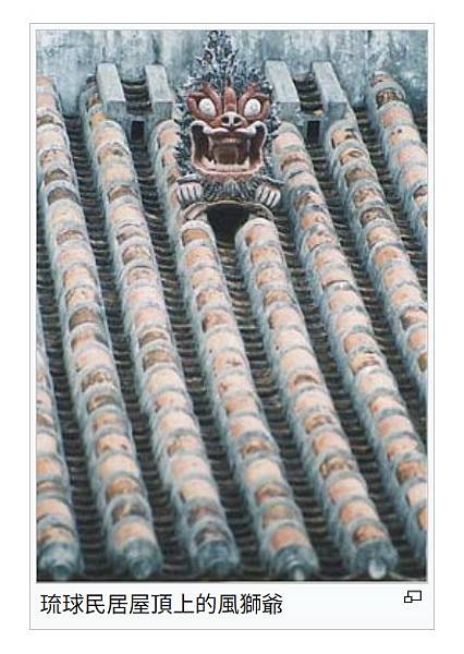 琉球國時代由明朝移居琉球的閩人三十六姓傳到沖繩[1][2],沖繩名稱的「日語:シーサー shīsā */?」是由琉球語沖繩方言發音的「獅子」而來。《球陽》記載,尚貞王時代的東風平郡富盛村屢次遭受火災,當地士族蔡應瑞(大田親雲上獻臣)提出設置面向八瀨嶽的屋頂獅子像作防火的風水用途[3][4]。琉球獅子原本只設立單體,但是受到石獅子影響,也有成對的琉球獅子,開口閉口各一的造型則受到日本本土狛犬的影響。由於琉球王國時代對住宅建築形式有嚴格的等級限制[5],只有士族的住宅屋頂可用瓦葺,平民住宅屋頂只能用茅葺,因此獅子像初期只設立在寺社、城門、御嶽、上級士族宅第[3]、貴族的墓陵、村落的出入口等處,因此當時只有士族屋頂才可設置風獅爺。至琉球國滅亡併入日本、明治時代廢藩置縣後,一般平民住宅才可使用瓦葺,民宅的屋頂也才開始設置琉球獅子,這段時間也是當地設置風獅爺的全盛時期[6]。材質基本上以石材、陶器、灰泥、漆器為主[7],近年也出現水泥、青銅製品。 風獅爺 - 維基百科,自由的百科全書