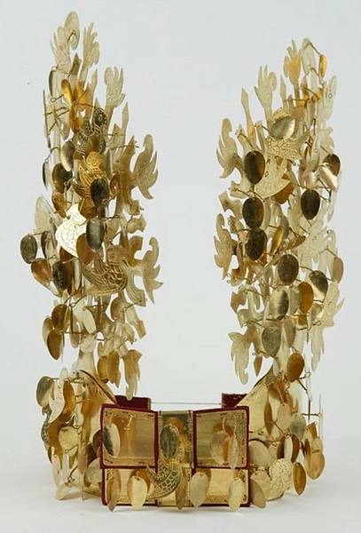 報導指出,這頂金冠,是仿製自曾統治朝鮮半島近千年的新羅王國所出土的王冠。新羅王朝以其對黃金的使用與在絲路上的活躍貿易,而有「黃金王國」之稱。