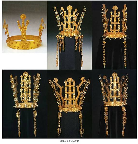 新羅金冠的特色是頂端有中間的出字形、二側的鹿角形立飾矗立開展,飾有勾玉,垂有二條金鍊,韓劇《善德女王》就曾復原過新羅金冠。(圖 5、6) https://www.threads.com/@__vintage_vibe.__/post/DHOTX7HhVwG?xmt=AQF035YUmiLH6f35yZfWfl_z1VsRBQadZKiX25kV1RDRTg