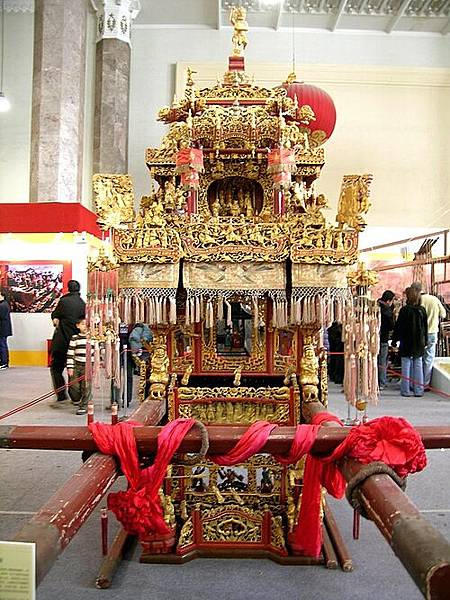 華貴雍容、朱漆雕花的“萬工轎”。花轎是十里紅妝最重要的器物。在寧海人看來,花轎是新娘地位的一種直接體現,代表著明媒正娶。因此能夠坐在精美的花轎裡,在十里紅妝的簇擁下出嫁也就成了一個女子一生中最為風光的時刻。富家大戶中的女子,會一生自豪地敘述她坐花轎出嫁時的情景。尤其是在小妾面前,用以強調她的正主地位。