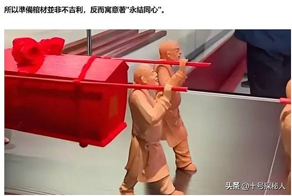 所以準備棺材並非不吉利,反而寓意著"永結同心"。