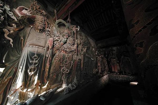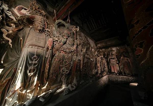 寺院為金代(公元1167年)重修,中間釋迦牟尼佛塑像完成於萬歷十五年(公元1587年),兩邊二十四造像為金代,“以木為骨、以泥為身、鐵絲造型”,造型複雜,風格誇張,極富和想像力,是金代塑像的巔峰之作。