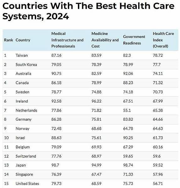 台、韓、新醫療好厲害!美加、荷蘭、愛爾蘭及澳洲也在前列