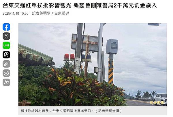 台東交通紅單挨批影響觀光 縣議會刪減警局2千萬元罰金歲入 - 臺東縣 - 自由時報電子報