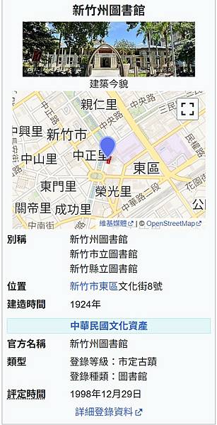 落成於1925年的新竹州圖書館,由日籍建築師宇敷赳夫設計,入口處有加寬的門柱、磚形條紋的柱面與水泥塑形的裝飾紋章。作為新竹市定古蹟的建築,目前不再館藏圖書而改作商用,遊客仍可在此欣賞近百年歷史的建築紋理。 新竹州圖書館 - 台灣光華雜誌 https://bit.ly/48nGqal