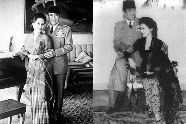 印尼前總統蘇加諾(左)與年輕時的黛薇夫人。