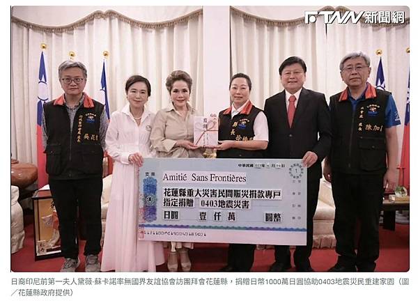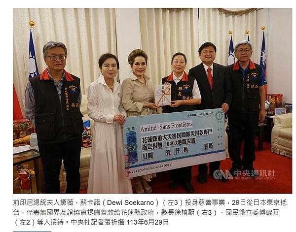 黛薇·蘇卡諾率無國界友誼協會訪花蓮 捐款千萬日圓助0403地震賑災 https://bit.ly/3M0emB4