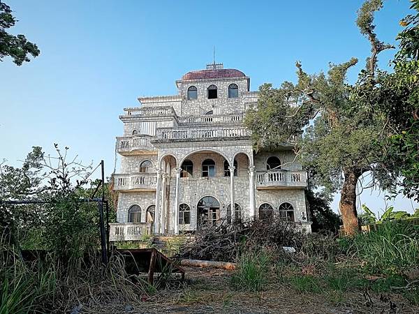 屋主早期從事木材業起家,賺錢便蓋了這棟豪宅,後來生意失敗房子遭法拍。我印象中90年代末期只有一位老太太帶著傭人住著,大約05至10年掛出布條籌備開生技公司,似乎也沒成功就荒廢至今。2022年有市民輕生在屋內,這棟命運多舛的豪宅又多了一件傳奇,成為凶宅。