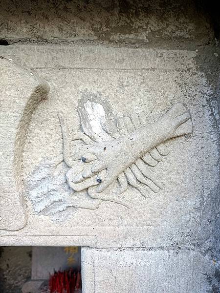 新竹縣橫山鄉田寮國小附近的詹屋石板伯公廟,正面有蝦、蟹雕飾非常罕見,文史工作者吳慶杰說,蝦有彈跳力代表時來運轉,蟹屬甲殼類,殼諧音為科,甲殼兩字顛倒代表科甲,一般石板伯公廟不會出現水中生物雕飾。
