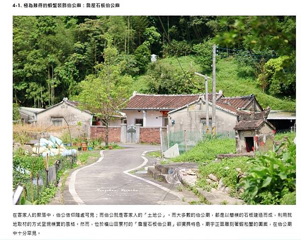 客家人稱土地公為伯公,早期大都是就地取材用石頭代表,後來打造石板伯公廟,隨著時代變遷越來越精緻,還會出現雕飾、屋頂線、門檻等,伯公廟的建築演變皆代表客家文化的獨特性。