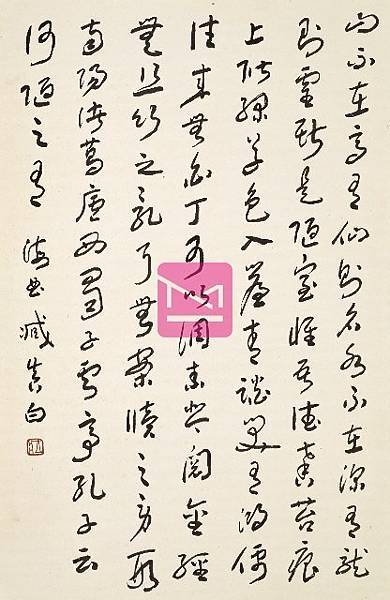 〈劉禹錫陋室銘〉為書法家臧真白(1924-2004)作品,釋文:「山不在高,有仙則名。水不在深,有龍則靈。斯是陋室,惟吾德馨。苔痕上階綠,草色入簾青。談笑有鴻儒,往來無白丁。可以調素琴,閱金經。無絲竹之亂耳,無案牘之勞形。南陽諸葛廬,西蜀子雲亭。孔子云:『何陋之有』?海曲臧真白。」姓名章:「臧」(朱文)。 本作為一標準草書中堂作品,用筆純任自然,線條樸拙,通篇結字疏朗,富含變化,行氣連貫,布局得宜,深得右老之法。臧真白師事于右任(1879- 1964),為其入室弟子,受其影響尤深。 〈陋室銘〉選自《全唐文》卷六百零八集。一說爲劉禹錫(772-842)所著,一說為較劉禹錫更早者所寫。此文託物以言志,藉由對於己身所居陋室的描寫和歌頌,表達自己安貧樂道、潔身自好的志節,反映其不慕富貴、不與世俗同流合污的高尚品格。