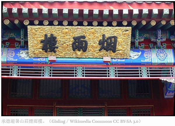 山莊內午門上康熙帝御筆避暑山莊匾額,匾額上的「避」字,「辛」字旁多一橫。(頤園新居/Wikimedia Commons CC BY-SA 2.0)