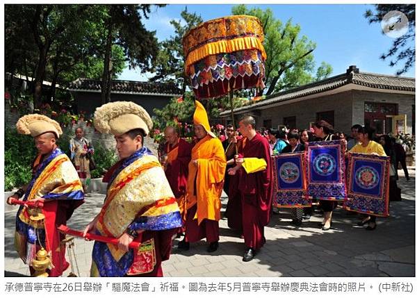承德普寧寺在26日舉辦「驅魔法會」祈福。圖為去年5月普寧寺舉辦慶典法會時的照片。 (中新社)