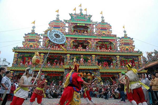 圖為台灣台東建醮牌樓及普渡醮活動一景。(中央社)