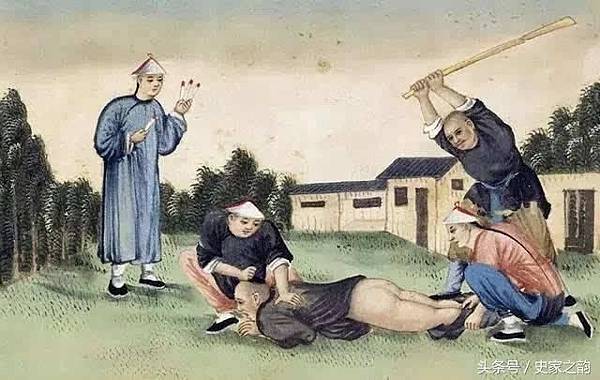 杖刑即用竹板拷打犯人,從60起至100分為五等,每等相差10下。