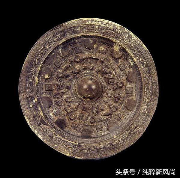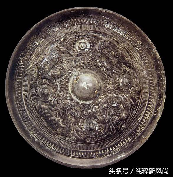 東漢青銅龍虎瑞獸畫像鏡,東漢文物。直徑20cm,厚1.05cm。畫像鏡是東漢時期開始流行的新鏡類,一般鑄作精良,紋飾採用高浮雕技法,圖案隆起凸出,具有強烈的立體感和生動的視覺效果。以浙江紹興出土最多,從鏡銘判斷,其主要產地在吳、會稽和武昌。畫像鏡有兩類,人物畫像鏡和神像、龍虎畫像鏡,後者也稱為神獸鏡。這枚鏡,圓鈕及座,主題紋飾由形態各異的龍、虎、騎有羽人的奔馬、雙角獸組成,鑄造精湛,紋飾華麗。